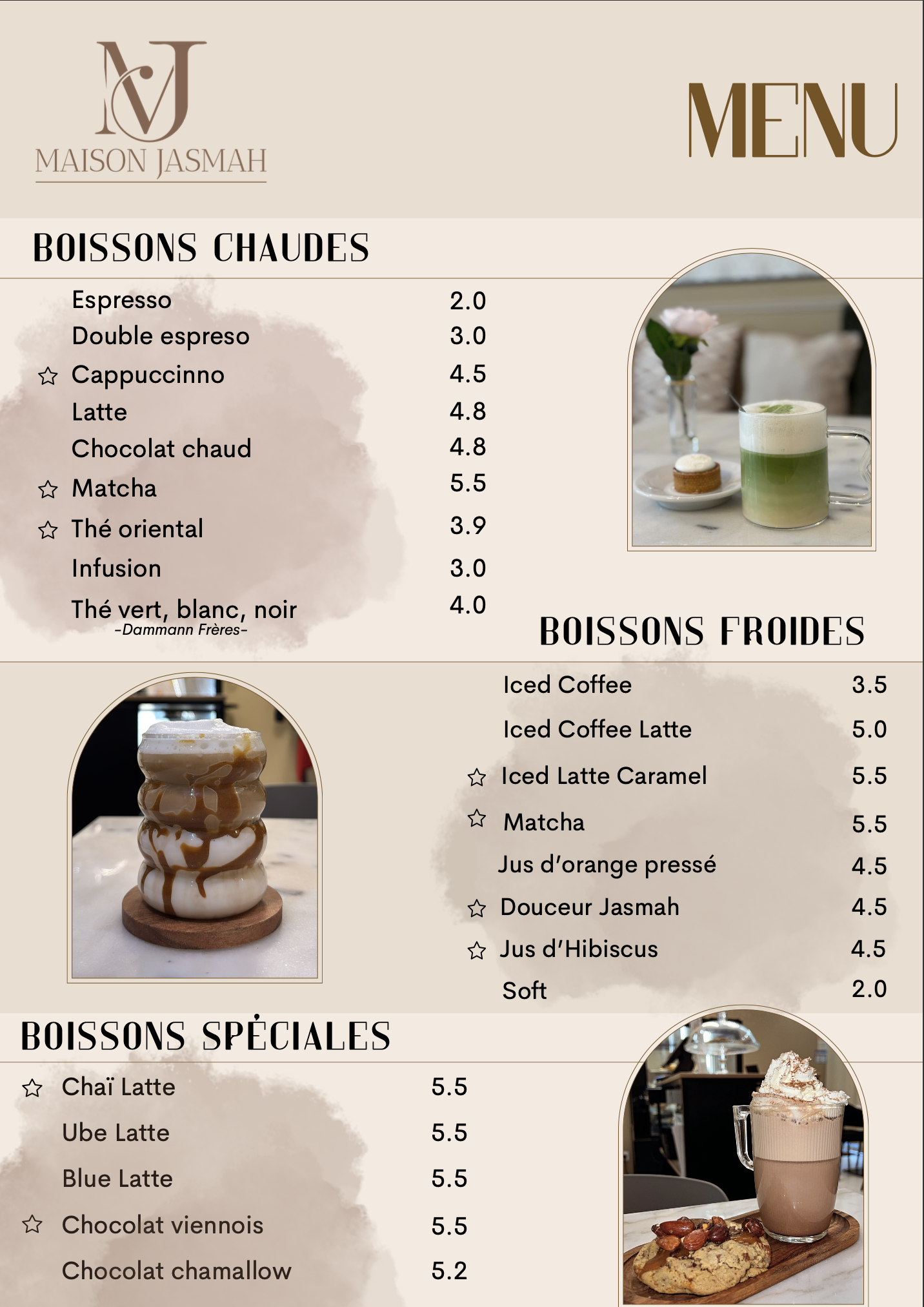 Chez Maison Jasmah, chaque douceur est faite maison, sur place, avec passion et savoir-faire.
